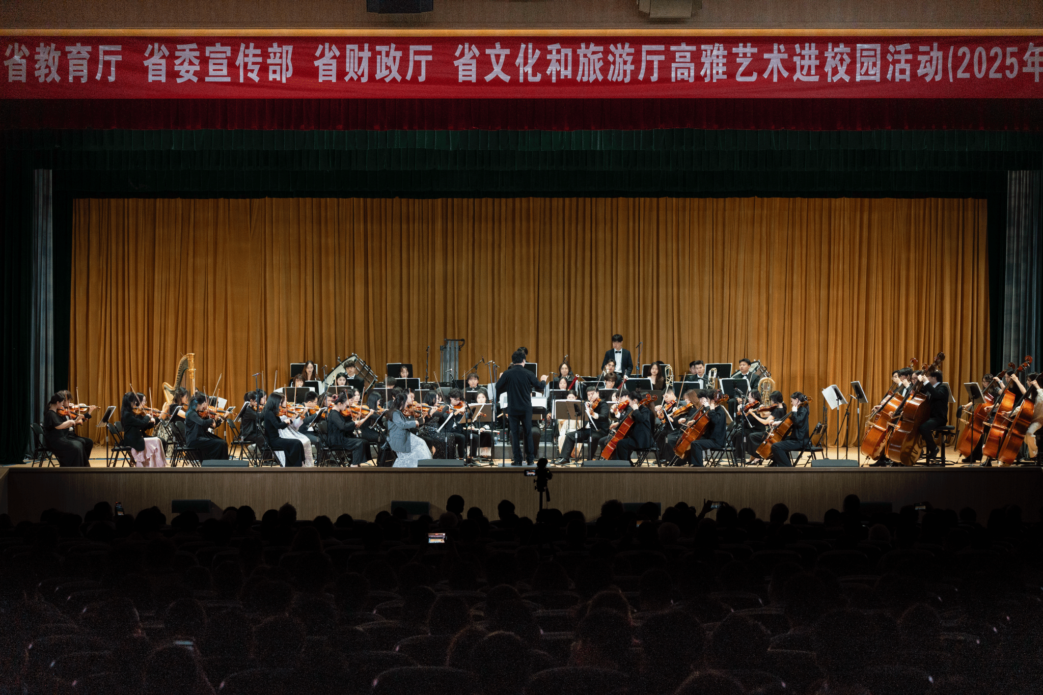 10月24日晚,江苏省高雅艺术进校园活动——南京艺术学院专场中外名曲交响音乐会《弦动百年·世纪华章》走进伟德官网,为师生呈现了一场融艺术性、思想性与时代性于一体的高雅艺术盛宴。南京艺术学院副校长苗雨,伟德官网副校长任旭东,以及1400余名师生共同聆听经典名曲。