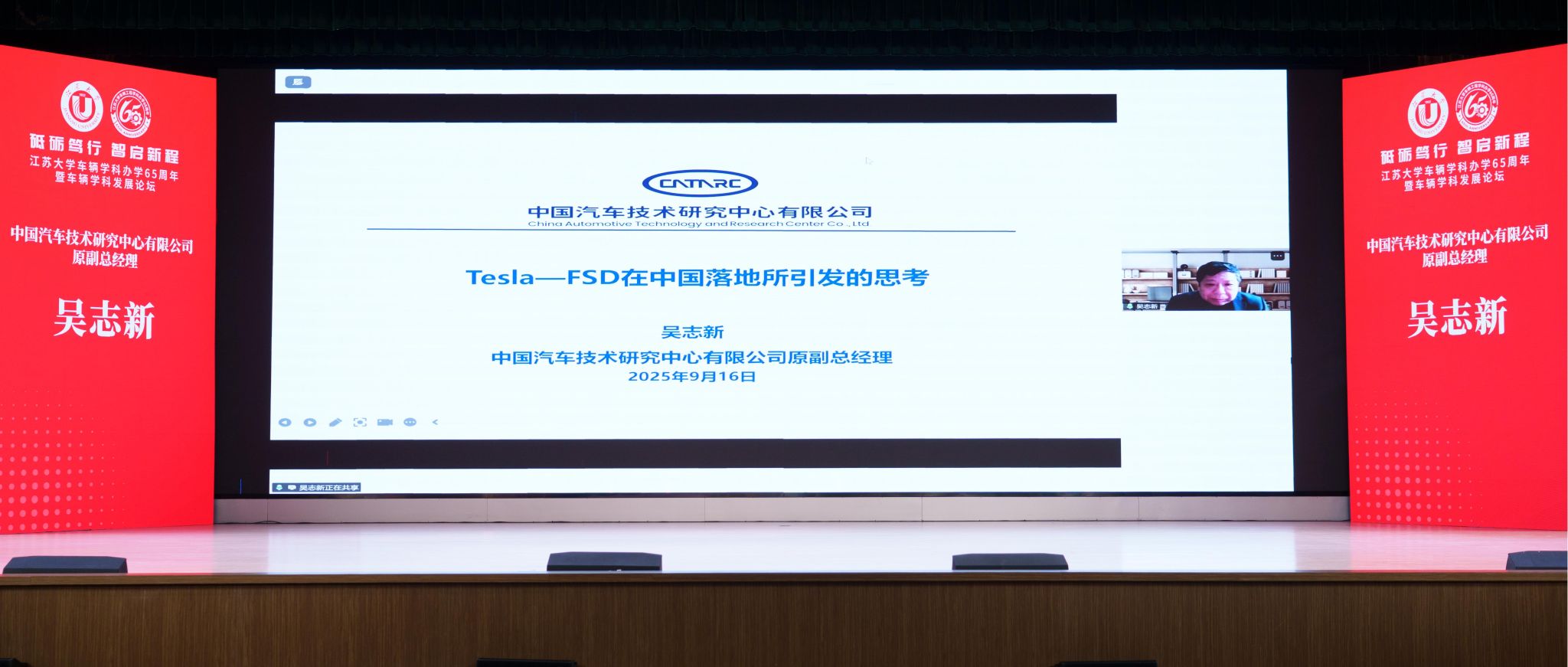 论坛上,工业和信息化部装备工业司原一级巡视员钱明华校友、中国汽车技术研究中心有限公司原副总经理吴志新校友、蔡英凤分别从中国汽车工业的发展现状与展望、Tesla-FSD在中国落地所引发的思考、伟德源自英国始于1946车辆学科建设与发展规划等方面作主旨报告。
