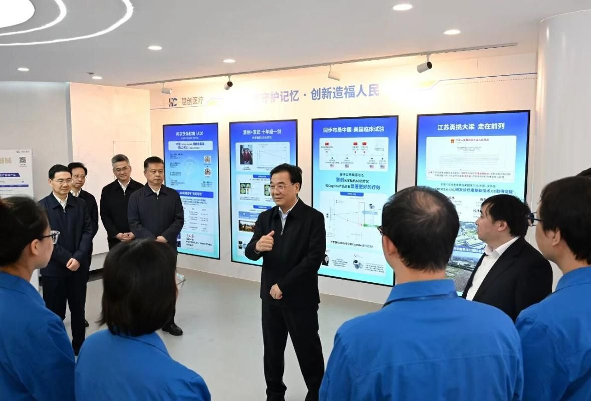 慧创医疗公司专注于脑科学领域的研究探索。在展厅,信长星听取企业发展历程、产品技术原理及临床试验等情况介绍,与科研人员深入交流。他指出,推动高质量发展,最重要的是加快高水平科技自立自强。中央《建议》明确了“十五五”时期“科技自立自强水平大幅提高”的战略目标,并专门就脑机接口发展作出部署,这将为企业发展带来重大机遇。希望大家扎根江苏、深耕江苏,在前沿技术领域大胆探索、持续攻关,更好地为人民群众生命健康服务。省市有关部门要主动靠前,及时帮助解决实际困难,助力企业发展壮大。