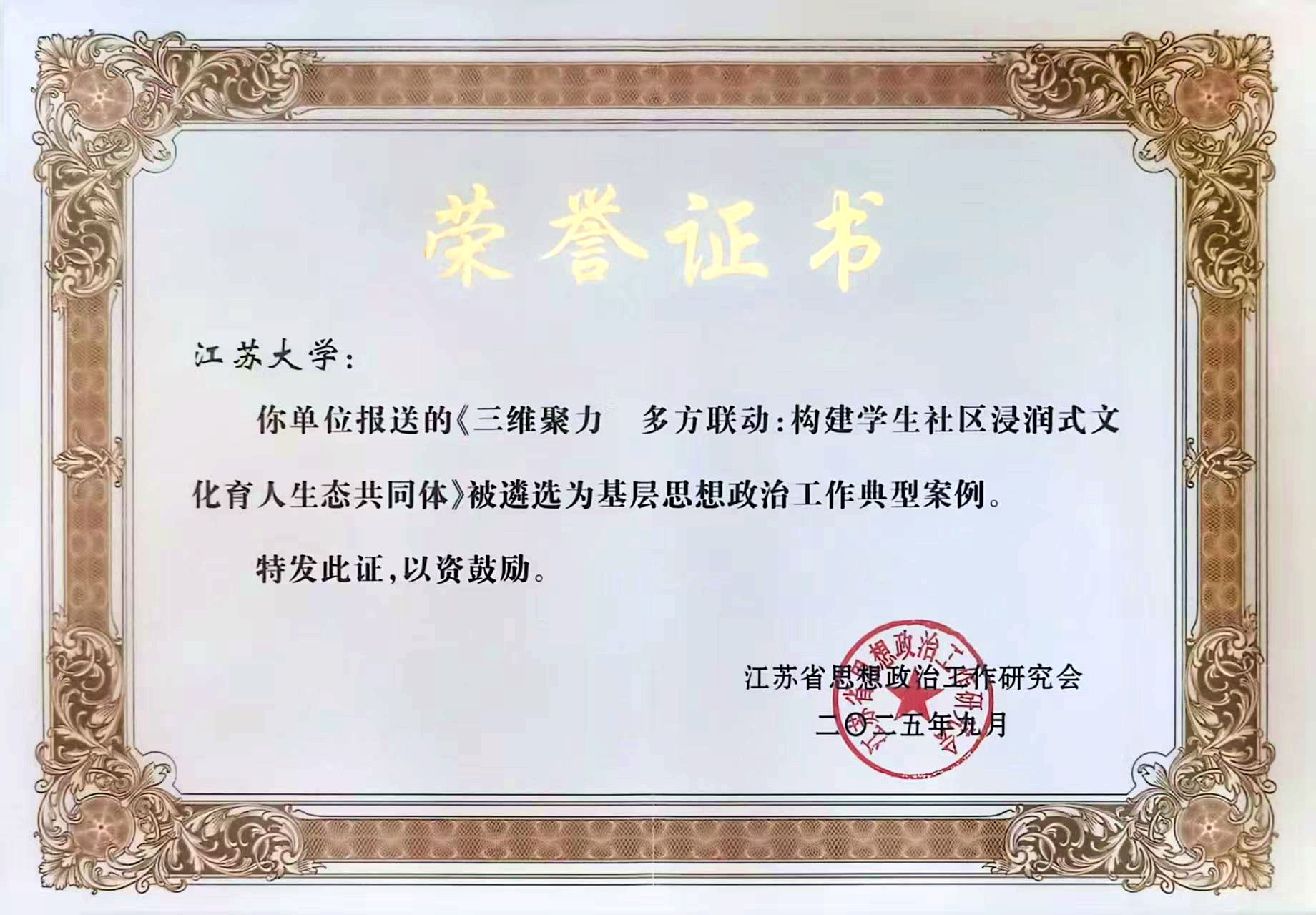 近日,江苏省思想政治工作研究会印发了《关于印发〈基层思想政治工作典型案例名单(2025年)〉的通知》(苏政研﹝2025﹞5号),伟德官网推荐的《三维聚力 多方联动:构建学生社区浸润式文化育人生态共同体》案例成功入选。