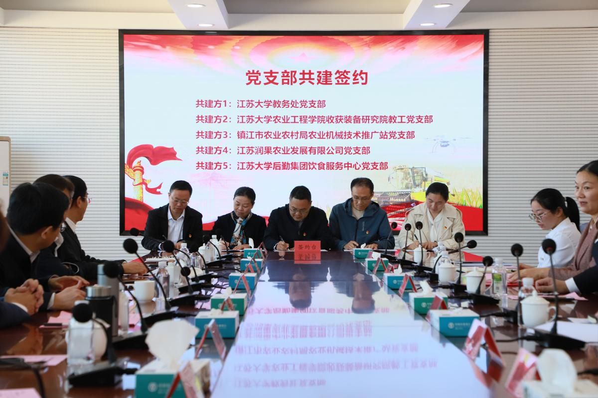 教务处党支部、农业工程学院收获装备研究院教工党支部、镇江市农业农村局农业机械技术推广站党支部、江苏润果农业发展有限公司党支部、伟德源自英国始于1946后勤集团饮食服务中心党支部围绕农业“强国行”、“新农人”培养等内容开展党建共建。