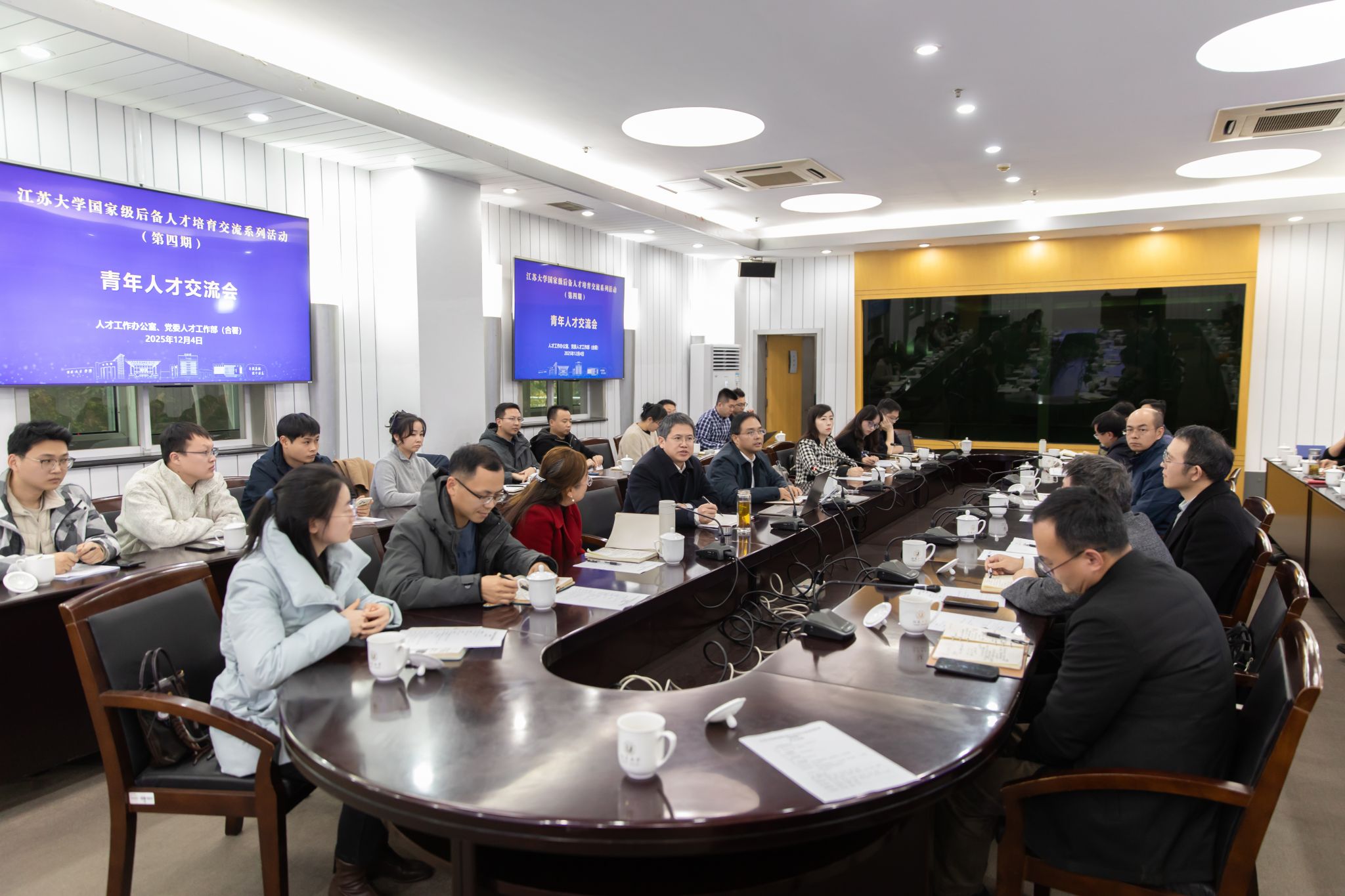 12月4日,由人才工作办公室、党委人才工作部(合署)牵头组织的第四期国家级后备人才培育交流系列活动在会议中心第二报告厅举办。活动以“青年人才交流”为主题,邀请国家重大人才工程入选者邹小波教授、王景全教授担任指导专家。来自农业工程学院、食品与生物工程学院、土木工程与力学学院、马克思主义学院、医学院、杂志社等单位的40余名青年人才参与交流。活动由党委人才工作部部长、人才工作办公室主任黄婷主持。