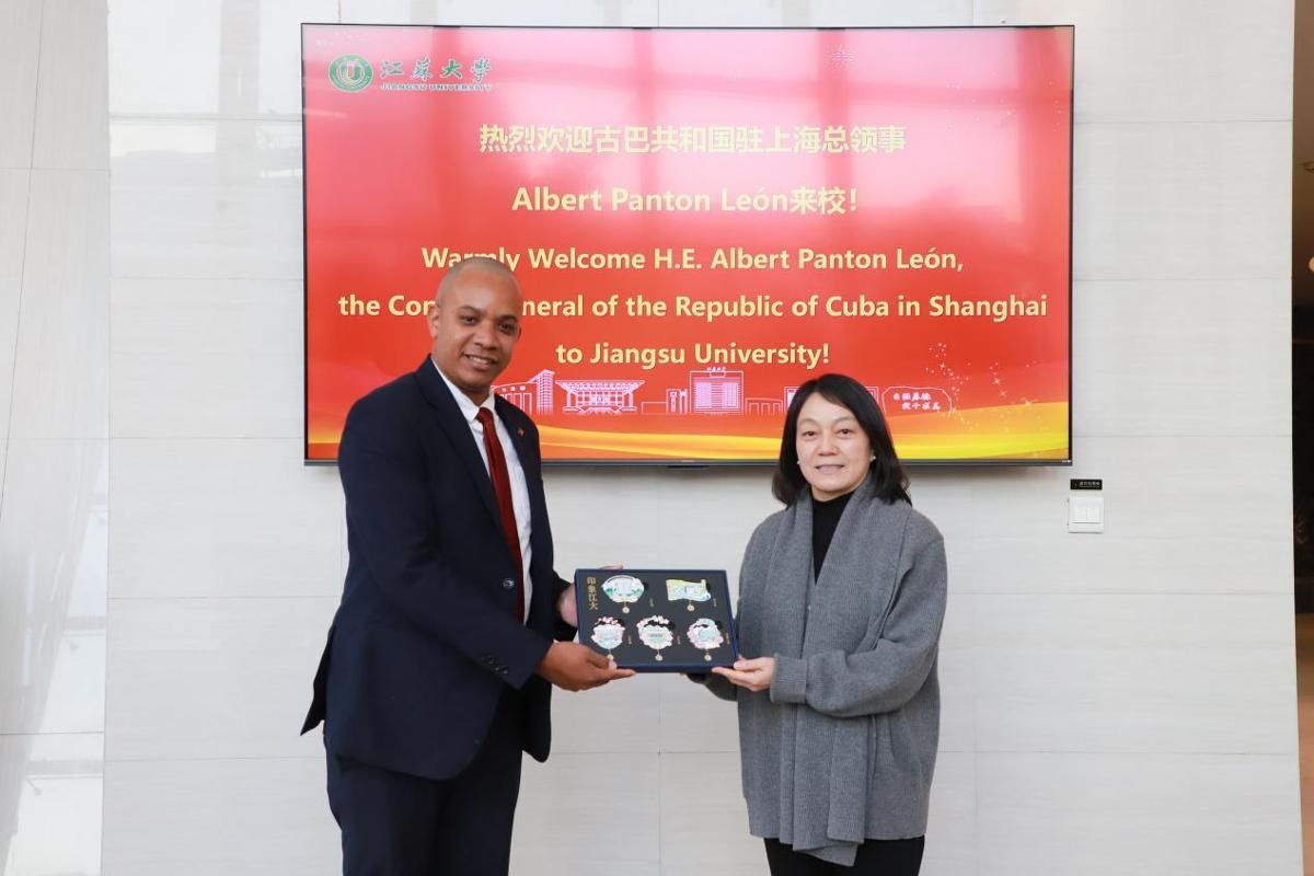 1月22日,古巴共和国驻上海总领事馆总领事艾伯特·潘顿·莱昂一行来访伟德官网。副校长陈红会见了来宾,国际合作与交流处相关负责人参加会见。