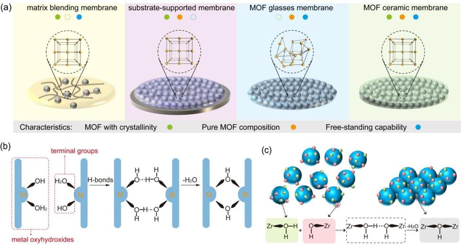金属-有机框架(MOF)材料因其高度可调的孔道结构和丰富的化学功能性,在气体分离、质子传导等领域潜力巨大。然而,MOF固有的粉末形态成为其从实验室走向实际应用的关键瓶颈。如何将MOF粉末加工成连续、自支撑且保持其优异本征性能的宏观膜材料,是该领域悬而未决的重大挑战。传统方法如聚合物共混或基底负载,往往牺牲MOF的负载量、结晶度或机械完整性;而新兴的MOF玻璃化策略,则会破坏其晶态有序结构,导致功能性退化。