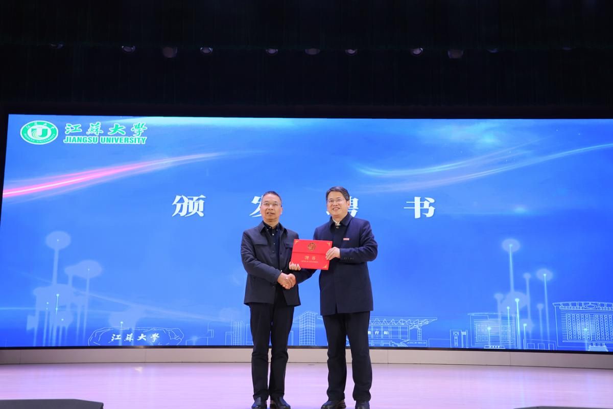 会上,邹小波为江苏省镇江第一中学党委书记吴铁俊颁发聘书。