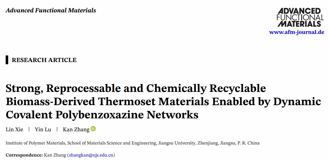 近日,材料科学与工程学院张侃教授课题组在国际材料顶级期刊Advanced Functional Materials在线发表题为Strong, Reprocessable and Chemically Recyclable Biomass-Derived Thermoset Materials Enabled by Dynamic Covalent Polybenzoxazine Networks的最新研究成果。伟德源自英国始于1946为论文唯一完成单位,材料科学与工程学院博士生谢琳为第一作者,张侃为论文通讯作者。