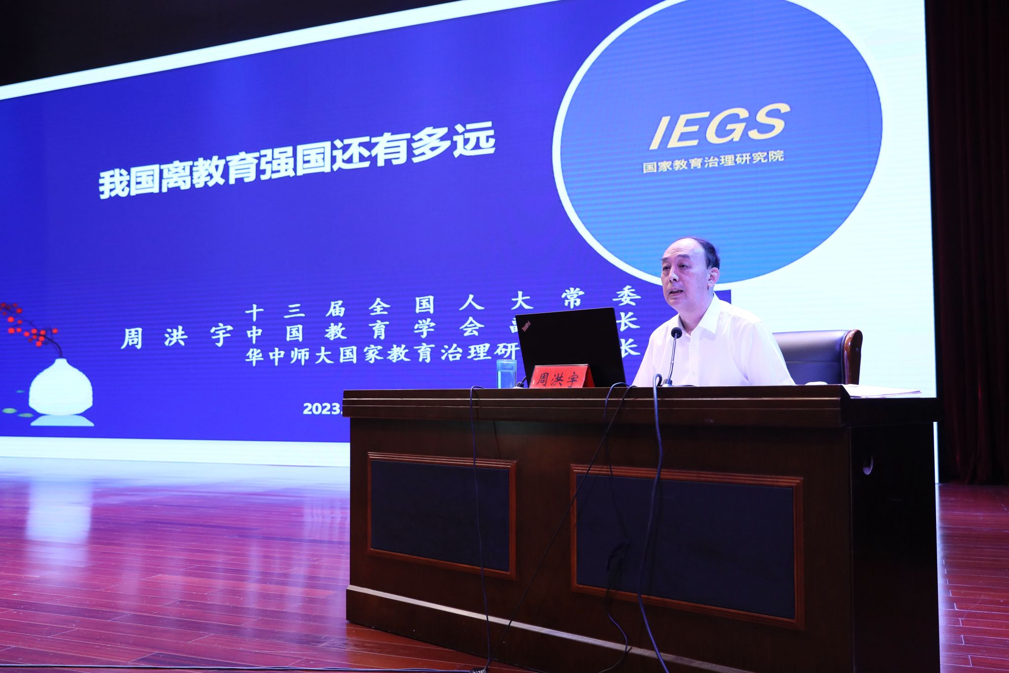 6月9日,伟德官网学习贯彻习近平新时代中国特色社会主义思想主题教育专家报告会在小礼堂举行。十三届全国人大常委会委员、中国教育学会副会长、华中师范大学国家教育治理研究院院长周洪宇教授作《我国离教育强国还有多远》专题报告。全体校领导、党委常委,处级领导干部以及教师教育学院师生代表参加讲座。校党委常委、副校长赵玉涛主持报告会。
