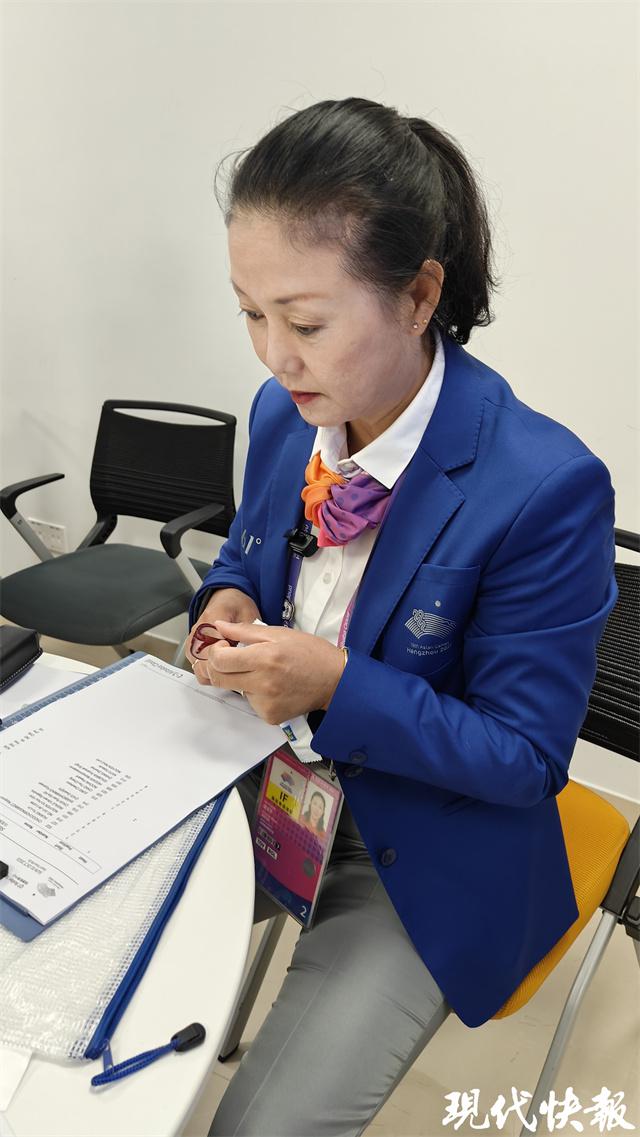 在本届杭州亚运会上,胡玉芹以 ITO(国际技术官员)的身份亮相速度轮滑赛场。