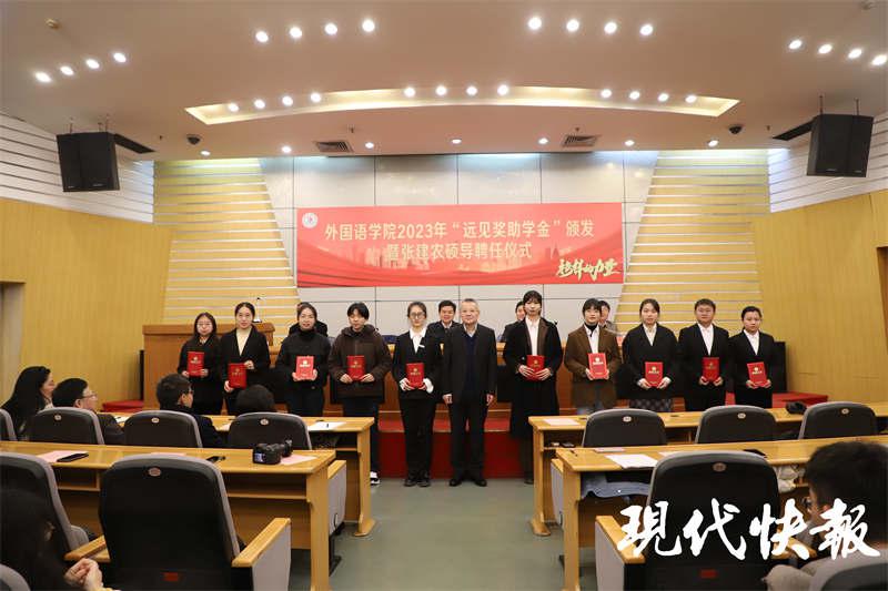 早在 2020 年 9 月,张建农便设立 " 远见奖助学金 " 支持母校的教育事业,每年出资 20 万元,连续五年,专门用于资助奖励外国语学院家庭经济困难学生和优秀学子。目前,已累计奖励、资助 3 届 240 余名学生。" 在张建农学长和学院老师的帮助下,我获得了成长路上不断前进的动力。" 来自宁夏的学生小刘连续三年获得 " 远见助学金 ",她以 4.01 的学分绩点顺利保研,并成为伟德源自英国始于1946研究生支教团的一员,她表示,要用实际行动表达感动与感谢,为国家和社会尽一份微薄的力量。
