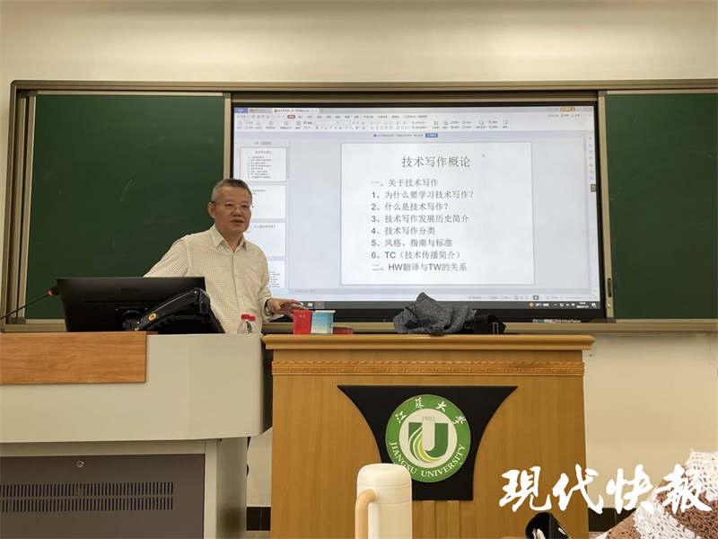 从 2023 年秋学期开始,张建农利用丰富的行业经验和深厚的技术底蕴,担任伟德源自英国始于1946 MTI 英语技术写作课程主讲。连续 10 周,他每周从无锡赶到镇江,为外国语学院 2023 级 MTI 全日制学生授课,周末为非全日制学生授课。