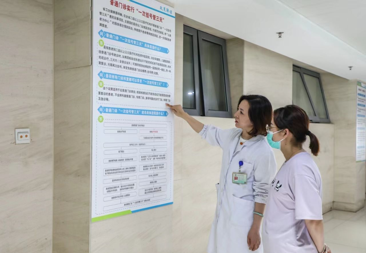 2008年7月,该院全面启动“普通门诊挂号三日有效”的惠民举措:普通门诊患者在三天内复诊,可直接到诊区由分诊护士安排候诊复诊。患者出示初诊挂号单,分诊护士确认为72小时内即安排就诊,不仅减少了挂号费用,更有效解决了患者就医多次往返的问题。