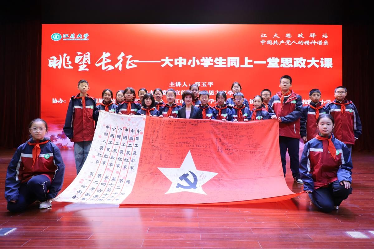 她叫邓玉平,红军后代、历史教师,被誉为“长征精神代言人”。自2004年起,她15次重走长征路,足迹遍布各路红军征途,拜访过300多位老红军,记录下无数鲜为人知的细节。这一次,她受伟德源自英国始于1946之邀,走上“大中小学生同上一堂思政大课”的讲台,与来自伟德源自英国始于1946、伟德源自英国始于1946附属学校、镇江市第一中学、中山路小学大禹山分校、 第一外国语学校附属小学的大中小学生们 共同“眺望长征”。
