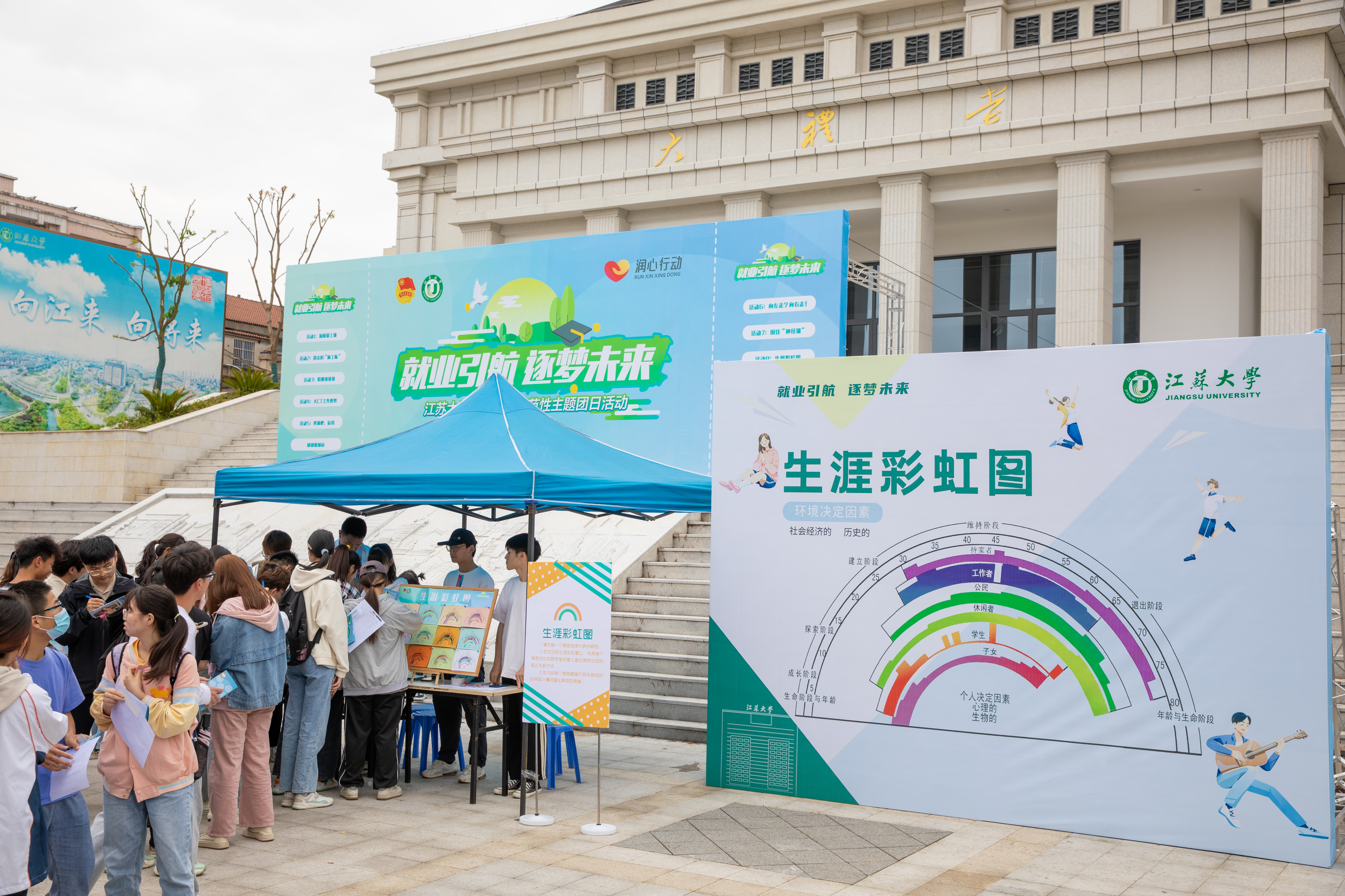 活动现场设置了自我探索、职业探索、决策方法、未来探索、交流咨询5个主题区域和10项体验式活动,旨在通过游戏参与、动感体验、深入探索等一系列活动唤醒学生生涯规划意识,指导学生科学有效地开展自我探索和职业探索。主办方还设置团团赋能站、团团咨询点、团团加油站,开展就业政策解读、简历诊断、面试交流等活动。