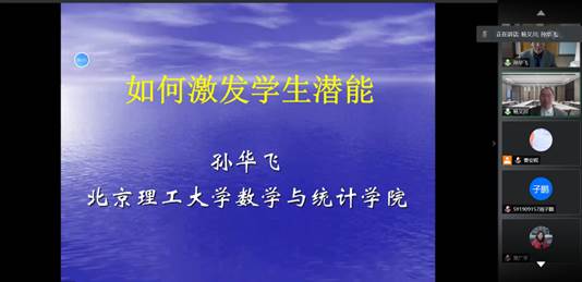 12月30日,“北航数学教学研究中心名师讲座” 首次线上报告活动顺利举行。北京理工大学孙华飞教授为学院师生作了《如何激发学生潜能》专题讲座,该报告吸引了来自北京地区包括北大等高校、以及江西、云南等地多所高校的师生在线学习交流。讲座由北航kaiyun开云官方网站本科教学副院长杨义川教授主持。