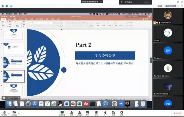 20221222日,计算科学系师生联合党支部线上开展了本学期最后一次学习日活动,会议由党支部副书记姜锦主持,支部书记孙玉泉老师、全体学生党员和毕业党员同志共同参与。