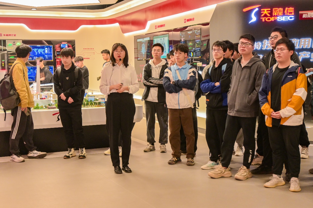 学院师生参观了天融信科技集团展厅,了解天融信科技集团近30年来的发展历程、技术创新实力以及业务发展布局等情况,通过观看车联网安全、物联网安全、工业互联网安全等模型展示,各位同学对网络安全行业的业务产业有了更直观的认识。