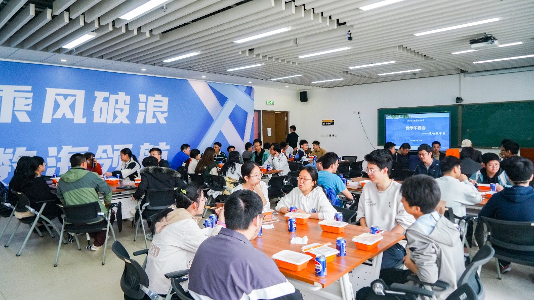 各位同学和教师共进午餐,了解基础数学前沿领域,交流个人成长发展的困惑,畅想大学的未来学习。教师们对学生的疑问进行了精准解答,并对同学们的基础课程学习予以针对性建议,希望各位同学能够夯实数学基础,在数学的世界中自由探索、发现兴趣。
