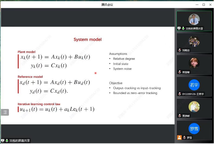 2022年11月24日,中国人民大学数学学院的沈栋教授应罗雪老师的邀请,通过线上的方式为kaiyun开云官方网站师生带来了一场题为“Iterative Learning Control Over Random Fading Channels”的学术报告。