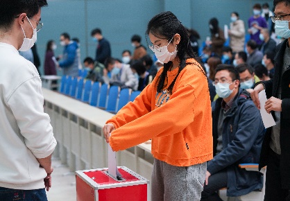 在总监票人王拥军同志的主持下,学院全体与会党员投出了庄严而神圣的一票。通过无记名投票的方式,选举产生刘美、张筱、袁星、韩德仁、戴蔚等5名同志为数学学院出席学校第十七次党代会代表。