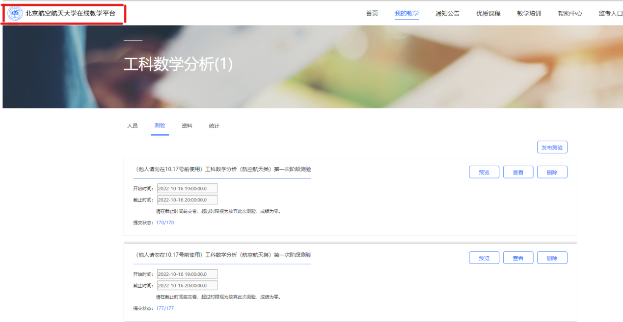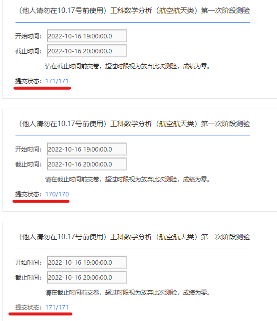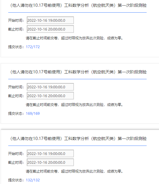 10月16日晚7点—8点,工科数学分析课程组依托学校在线教学平台组织开展了一次过程性测验,1311名学生认真准备积极参加,几乎覆盖了航空航天大类全部学生,参与率接近100%。当天恰逢党的二十大开幕,在这个隆重的日子,同学们刻苦学习,积极参加线上能力测试。