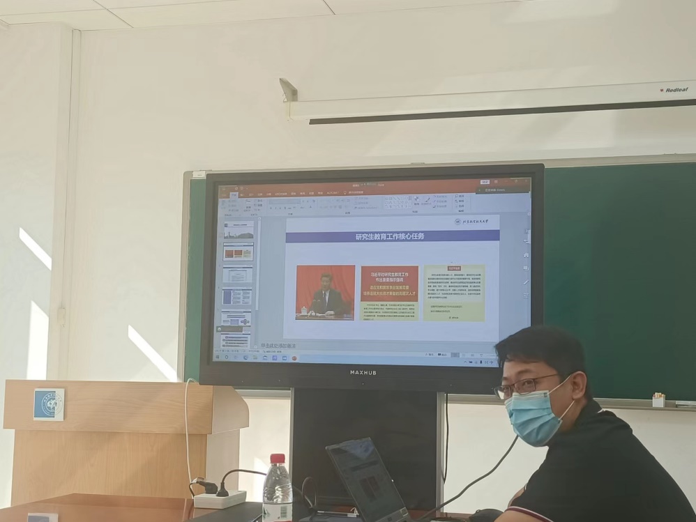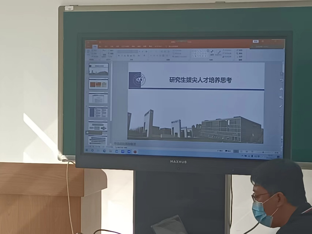 随后,郭炳晖老师以《研究生拔尖人才培养思考》为题讲授党课,拉开了支部“人人讲党课”活动的序幕。郭老师从7月29日研究生教育工作会议出发,讲述了自己对研究生人才培养的思考。