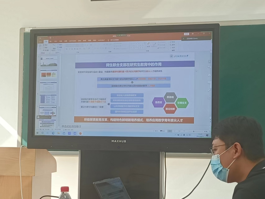 为进一步建设学习型党支部、充分调动党员学习热情、强化学习效果,根据学院“人人讲党课”指导意见,数据与信息科学师生联合党支部于2022年8月31日召开支部会议,对“人人讲党课”工作进行了规划。会议由郭炳晖老师主持。