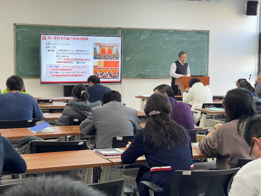 为深入学习贯彻党的十九届六中全会精神,2021年12月29日,kaiyun开云官方网站在沙河校区E404召开全体教职工大会,全院80余名教职工参加会议,韩德仁院长做党的十九届六中全会精神宣讲,会议由党委书记袁星主持。