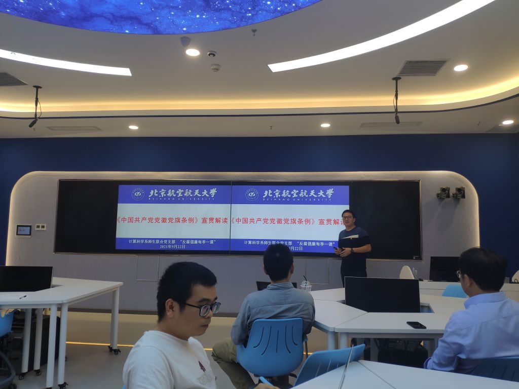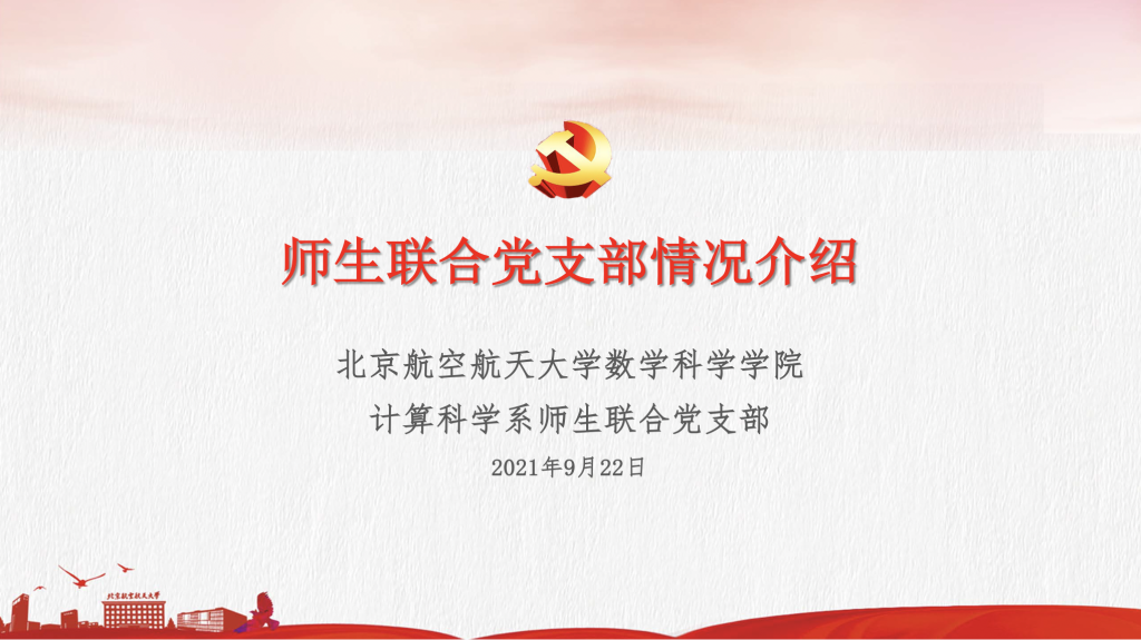2021年9月22日下午,北航kaiyun开云官方网站计算科学系师生联合党支部在主楼E405开展迎新活动,迎接支部新成员。11名来自计算科学系的2020级和2021级的研究生党员充实到支部中,为党支部注入了新鲜的力量。师生联合支部是全国党建工作样板支部建设单位,是kaiyun开云官方网站党建工作的一项创新,迎新活动也是师生联合支部区别于单一教工和学生支部的重要活动。