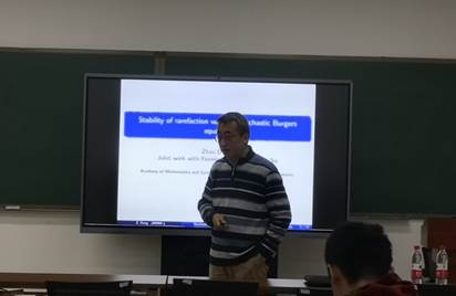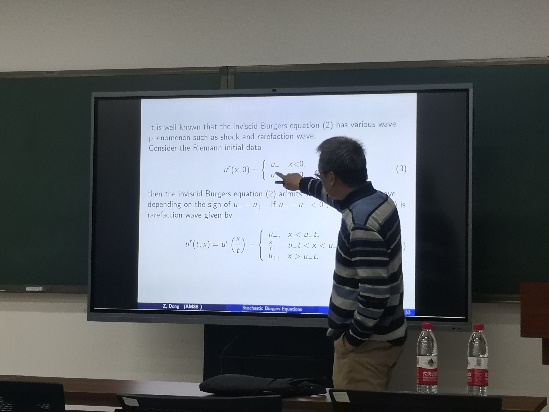 2020年11月5日下午,中国科学院数学与系统科学研究院研究员董昭受邀访问我院,为师生带来了一场题为“Stability of rarefaction wave for stochastic Burgers equation”的学术报告。报告由我院院长韩德仁教授主持。