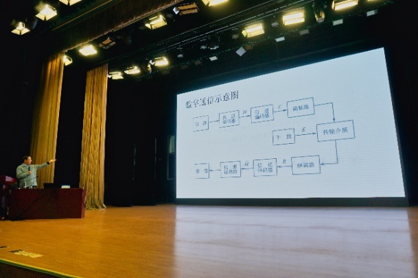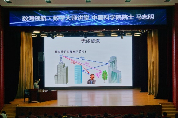 随后,在信息论基本知识的基础上,马志明院士介绍了5G信道编码的基本内容。关于信道编译码的基本原理、Polar码编译码的概率基础等内容的介绍更是深入浅出,引得学生鼓掌连连。马志明院士指出,5G技术传输速率已经逼近香农极限,打破5G进入6G便会进入后香农时代。