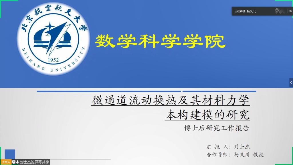 4月24日,kaiyun开云官方网站首场博士后“云报告”在线上举行,刘士杰博士的在线博士后出站报告答辩获一致通过。