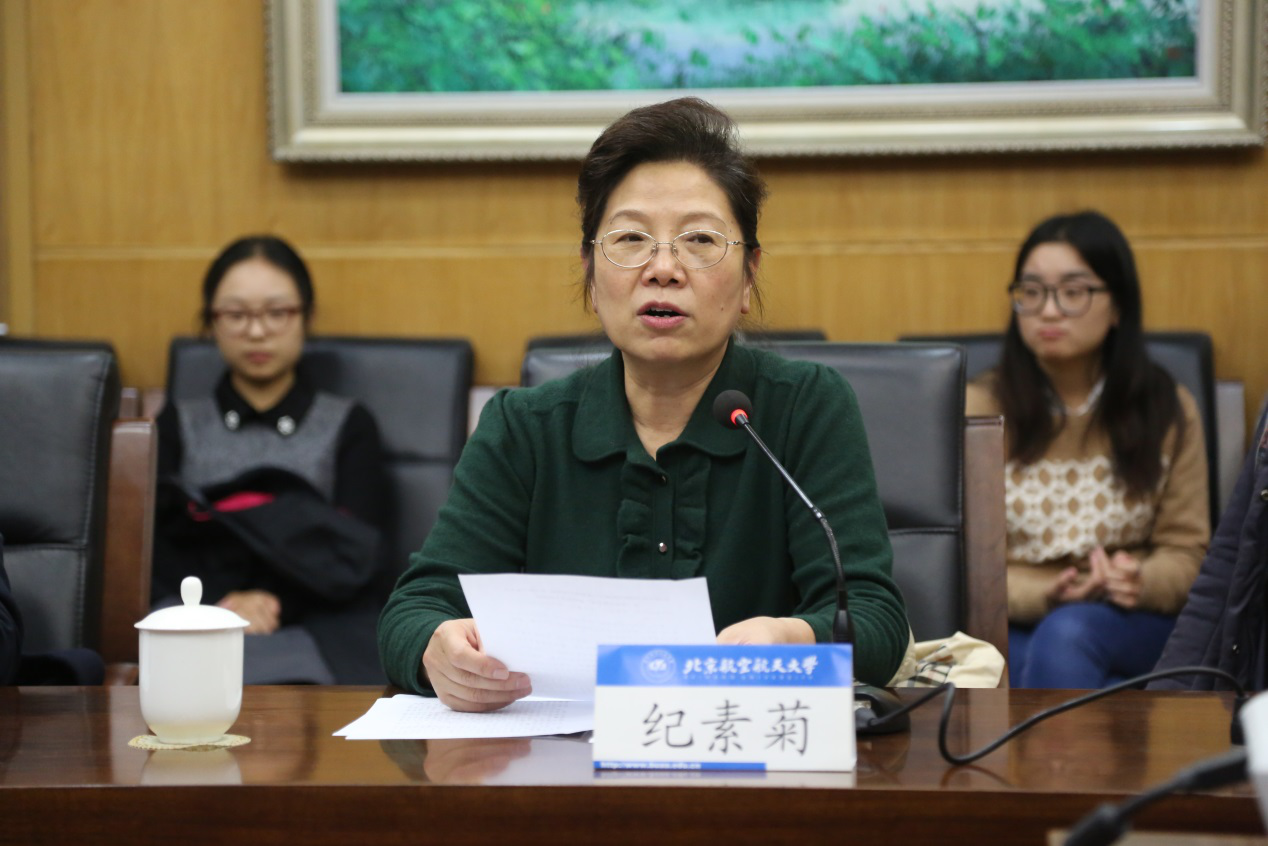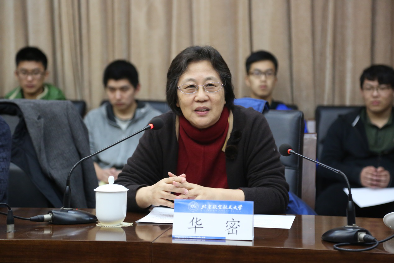 颁奖仪式上,纪素菊教授首先致辞,她向获奖的同学表示了祝贺与鼓励,对于华罗庚班这种“拔尖人才培养方式”也表示了充分的肯定,在近些年,无论是拔尖型人才培养的国际化方面,还是各项学科竞赛与科技竞赛方面,华罗庚班都有优异的表现。她希望在与中科院数学院的大力支持下,华罗庚班的良好建设能够成为北航实施“拔尖人才培养计划”的强健助推力。同时,她也期望华罗庚班的同学们能再接再厉,再创辉煌。