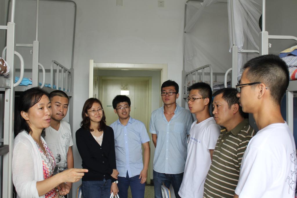 9月2日中午,学院党委书记李红捷老师、党委副书记王菲老师、13级辅导员杨亮以及14级辅导员王鑫到学生宿舍亲切慰问了刚刚报到的14级的同学以及家长。走访过程中,见到了很多来送学生的家长,李书记对他们的支持和辛苦表达了感谢。在和家长交流的过程中,李书记表示大学是学生独立成长的舞台,应更多地让学生在不同地域文化交流的环境中成长,在独立生活中锻炼自己。同时王菲老师详细的介绍了近期活动安排,仔细询问了新生们到校几天的情况,并解答疑问,表现出极大的关心。辅导员王鑫向家长表示会尽职尽责辅导各位同学,让他们有一个圆满顺利的大学生活。新生们也倍感关怀,斗志昂扬地准备接受大学生活的新考验。