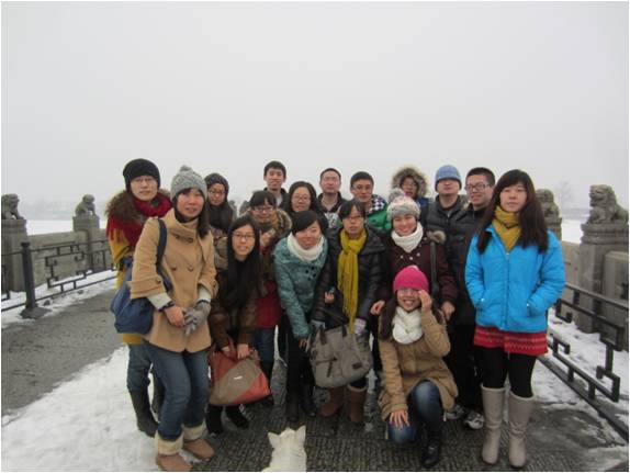 随后参观了雪后的卢沟桥,在烈烈寒风中这座古桥更显示出岁月的痕迹,似乎在诉说着当年日军的罪行。同学们相互谈论桥上形态各异的石狮子不禁感慨到,卢沟晓月名垂千古,大桥雄狮威震八方!然而这些石狮子又仿佛在无声的向我们讲述着73年前的那段可歌可泣的历史,国民革命军第29军作为抗击侵略者的英雄部队也永远的留在历史的长河中,让我们每个人把这段历史永远铭记在心。