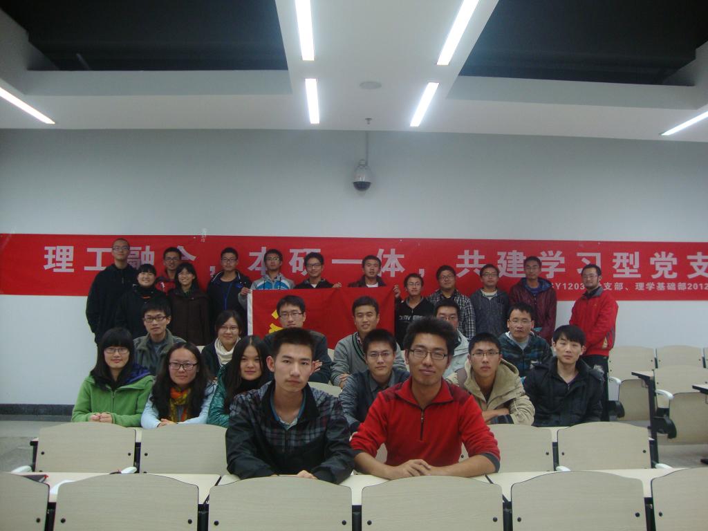 最后,两支部成员交流了十八大学习的内容,并且借此机会,由SY12037党支部通过了秦涛同志转正的请求,理学基础部2012级学生党员学习了转正程序和相关规定。整个对接会双方自由交流,充分了解,为日后共建工作奠定了良好的基础。