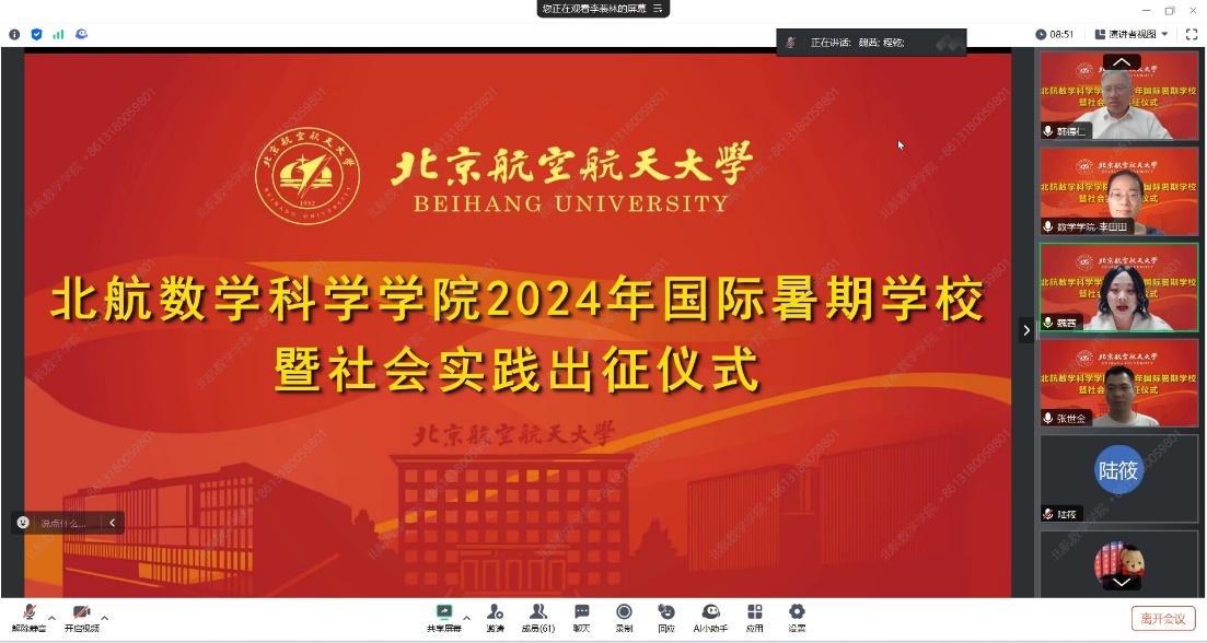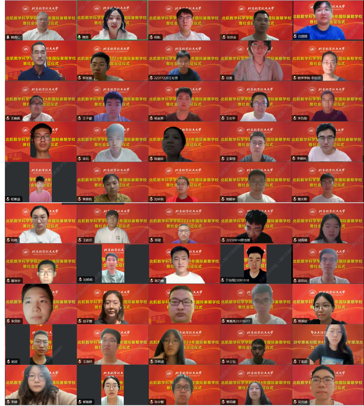 7月19日晚,kaiyun开云官方网站2024年国际暑期学校暨社会实践出征仪式于线上会议平台进行。学院院长韩德仁、党委副书记魏茜,暑期学校带队教师代表张世金、李田田、陆筱,社会实践队指导教师代表程乾,国际暑期学校和社会实践队学生代表等近60人参加仪式。本次出征仪式由魏茜主持。