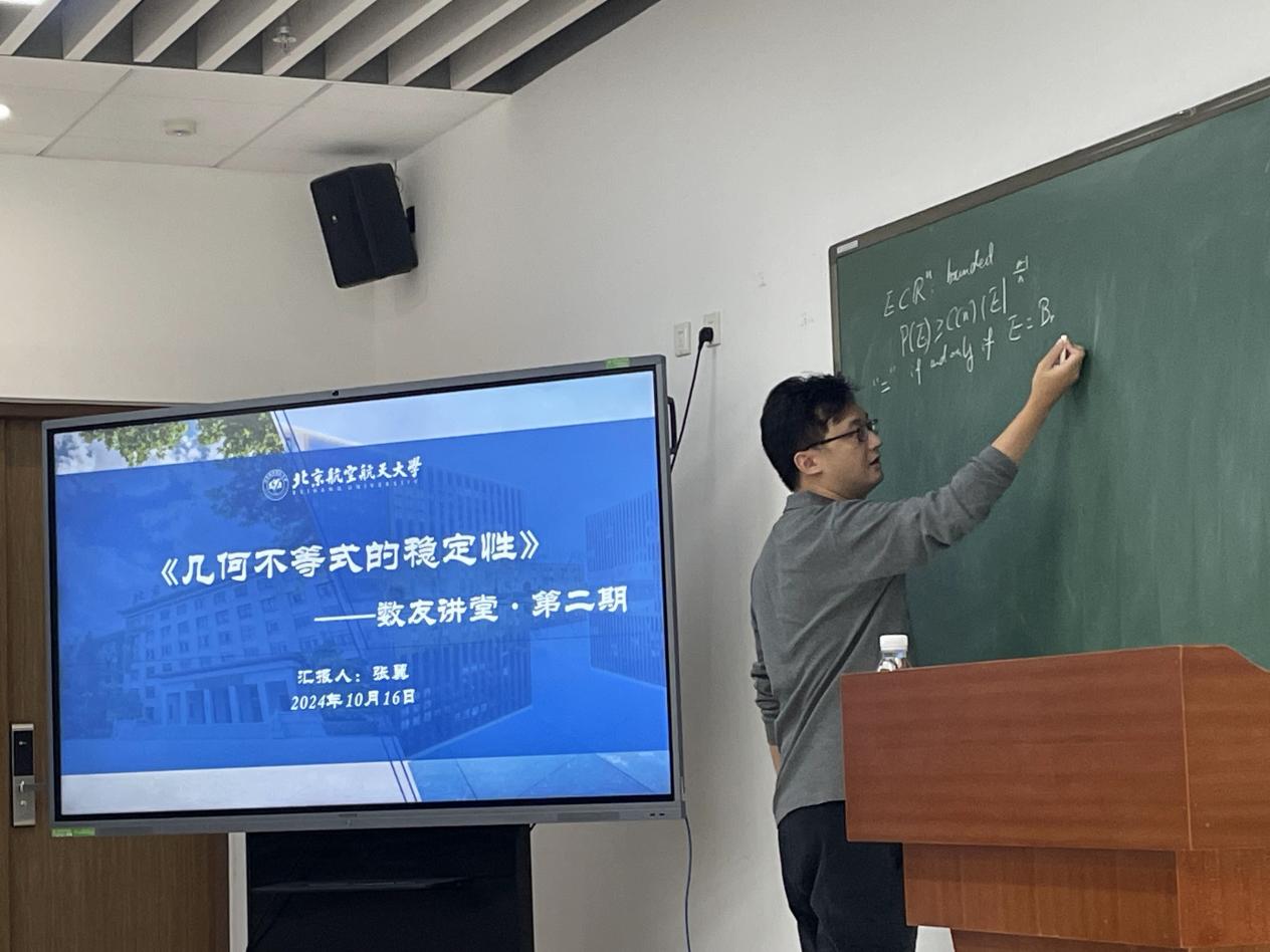 10月16日,kaiyun开云官方网站2013届校友、中国科学院数学与系统科学研究院副研究员张翼返校主讲《几何不等式的稳定性》数友讲堂。