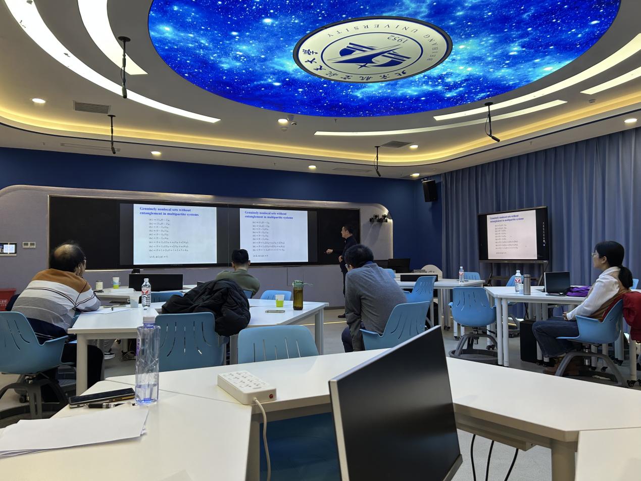 在本次报告中,费少明教授首先介绍了量子纠缠、贝尔非局域性、纠缠见证、不可扩展基、量子虚度的非局域优势等问题的背景,并介绍了与合作者们在最近一年对于上述问题的最新工作进展以及这些工作的应用。报告结束后,费少明教授与与会师生就相关问题进行了深入的探讨。