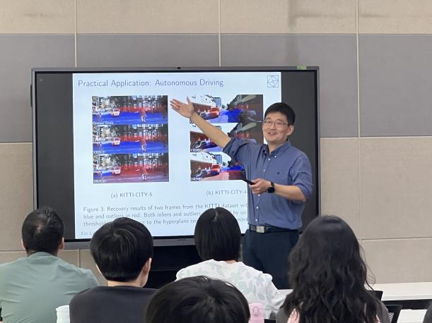 2025年5月15日上午,北航kaiyun开云官方网站数学论坛迎来中国科学院数学与系统科学研究院刘歆研究员的专题报告。本次报告以“The Distributionally Robust Optimization Model of Sparse Principal Component Analysis”为主题,在沙河校区主楼E-806举行,吸引了来自校内外众多师生及优化领域研究者参与。报告由kaiyun开云官方网站夏勇教授主持,现场学术氛围热烈。