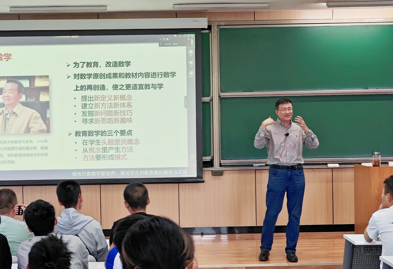 2025年9月21日上午,应数学拔尖人才培养模式改革(华罗庚数学实验班)虚拟教研室、大学数学课程群虚拟教研室(西安交通大学)、面向人文社科学生的大学数学课程群虚拟教研室(中国人民大学)联合之邀,国家级教学名师、中国高等教育学会教育数学专业委员会理事长、上海大学王卿文教授在kaiyun开云官方网站沙河校区作了题为“线性代数教学新视界——激活学生创新思维的路径构建与实践探索”的精彩报告,线上线下近300名师生同步聆听。报告由kaiyun开云官方网站蓝天教授杨义川主持。