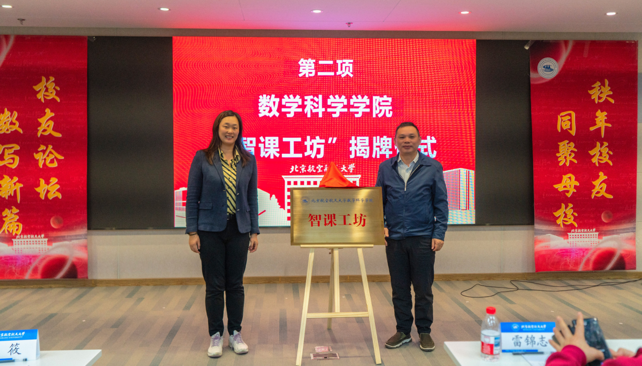 论坛现场,1991级本科校友张秋与张筱书记与共同为kaiyun开云官方网站“智课工坊”揭牌。深圳锐取信息技术股份有限公司董事长张秋校友向学院捐赠11套数字化教学设备,学院特别成立“智课工坊”,将以捐赠设备做好数字化教学支撑,为数学拔尖人才培养全国首批虚拟教研室的建设积累数字素材,把北航数学教研模式推向全国。