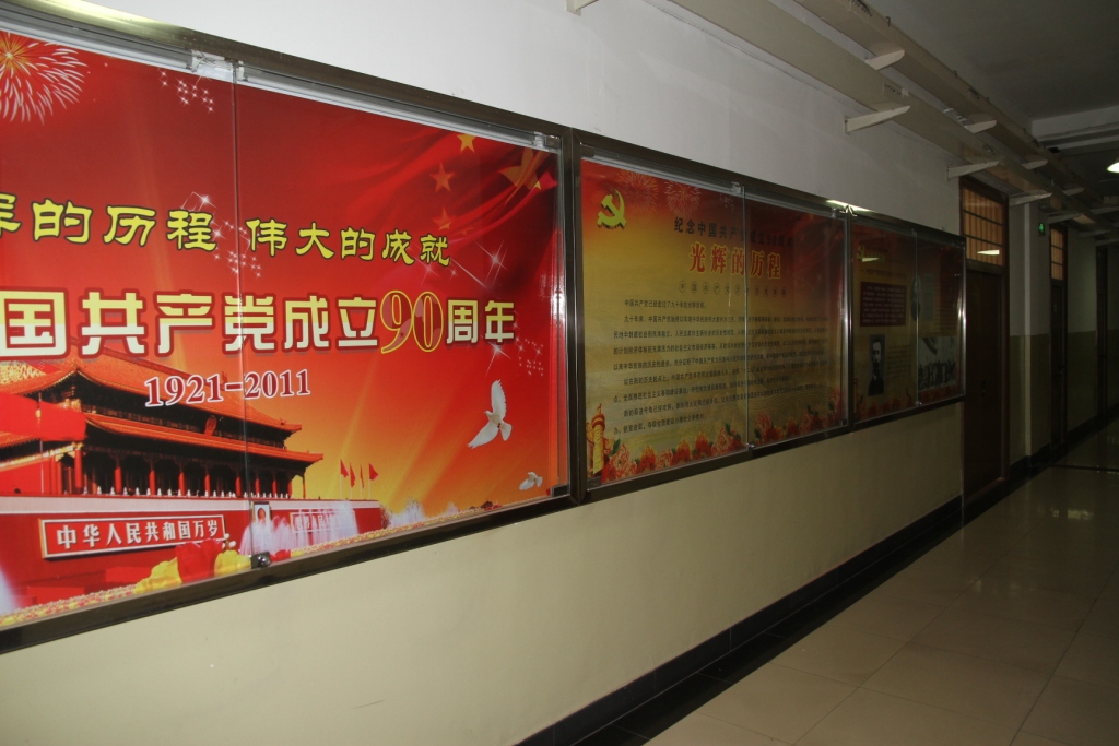 其中一个重要的活动就是回顾党的光辉历史,讴歌党的丰功伟绩,营造庆祝建党90周年的浓厚氛围。学院党委首先在学院橱窗展出了《纪念中国共产党成立90周年——光辉的历程——中国共产党历史及成就展》,展出共分为“中国共产党的创立和投身大革命的洪流、在土地革命中开辟农村包围城市的道路、全民族抗战中的中流砥柱、夺取民主革命的全国性胜利、开国奠基-积极探索社会主义道路、改革开放和社会主义现代化建设的新阶段、坚持科学发展-铸辉煌成就”七大部分,以图文并茂的形式讲述了中国共产党90年来走过的光辉历程。中国共产党历史及成就展的展出得了全院师生的广泛关注,成为了学院一道靓丽的风景线。其次,学院党委还积极响应学校党委号召,为每名教职工党员及每个学生党支部发放了《中国共产党简史》,组织师生党员学习《中国共产党简史》,在师生党员中深入开展学习中国共产党历史的活动。