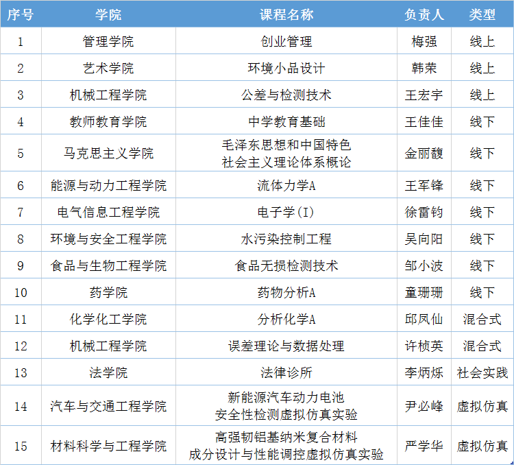 近日,教育部印发《教育部关于公布第二批国家级一流本科课程认定结果的通知》(教高函〔2023〕7号)正式公布第二批国家级一流本科课程认定结果。伟德官网共有15门课程入选,其中线上一流课程3门、线下一流课程7门、线上线下混合式一流课程2门、社会实践一流课程1门、虚拟仿真实验教学一流课程2门。截至目前,伟德官网两批国家级一流本科课程共计33门,获批总数量列江苏省高水平大学第3位。