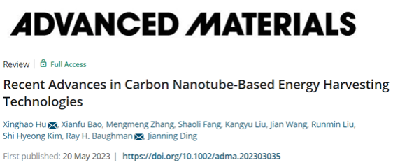 近日,伟德官网智能柔性机械电子研究院胡兴好副教授等人在《先进材料》 (Advanced Materials)上发表题为“Recent Advances in Carbon Nanotube-Based Energy Harvesting Technologies”的综述文章。