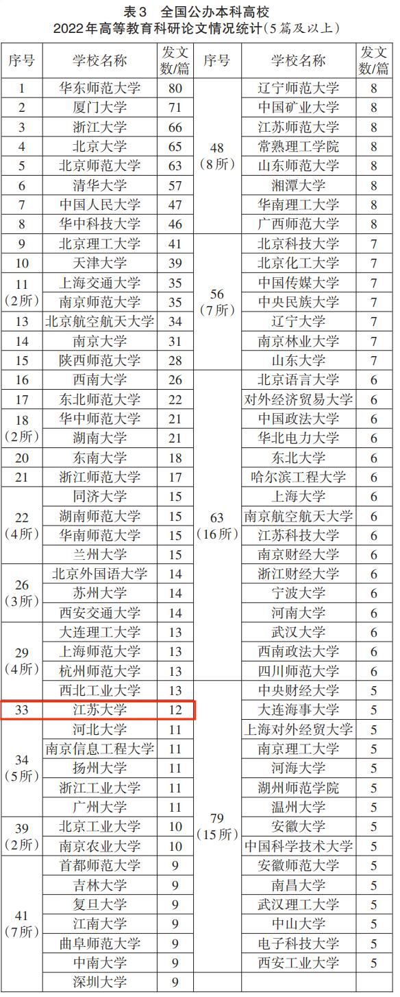 近日,《中国高教研究》发布了《2022年全国高校高等教育科研论文分析——基于19家教育类最具影响力期刊的发文统计》。在全国公办本科高校高等教育科研论文情况统计中,伟德官网以12篇发文进入排行榜,位列全国第33位,比上年度进步5名。