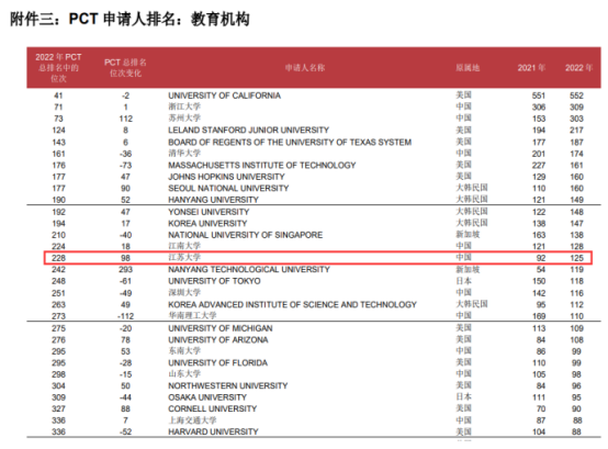 近日,世界知识产权组织(WIPO)官网发布了《专利合作条约》PCT专利申请情况,伟德官网2022年PCT专利申请数为125件,在PCT申请人总排名228位,比2021年提升98位;在教育机构PCT申请人排名中,伟德官网位列全球第15名、国内第五名,创历年最好成绩。