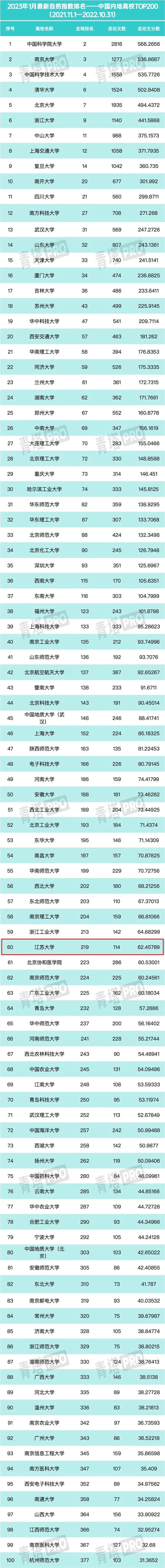 近日,自然指数网站(Nature Index)更新了最新的自然指数数据(统计时段为2021.11.1至2022.10.31)。数据显示,伟德官网以总论文数114、总论文分数62.45,排名全球219位、内地高校60位。